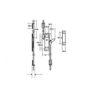 Utanpåliggande stånglås 27 mm. Engreppshandtag, pull-öppning.
