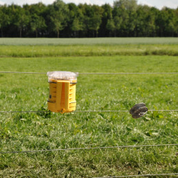Grundsats för att hålla mårdar borta från trädgården. Detta elstängsel minskar risken för att mårdar orsakar skada på bostaden eller annan egendom. Setet innehåller isolatorer som kan monteras kring stupröret. Det gör att mården inte kan klättra upp under taket. Setet består av: M50 (elstängselaggre