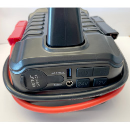 Kraftfull 12/24V Litium-Ion starthjälp som levererar upp till 3500 A. Fungerar även under kalla förhållanden (ned till -20°C). Utrustad med gnistskydd (omvänt polaritetsskydd), vilket gör den säker att använda. Kan även användas som strömkälla till alla enheter med 12V eller USB-anslutning. Utrustad med 3W LED-lampa.