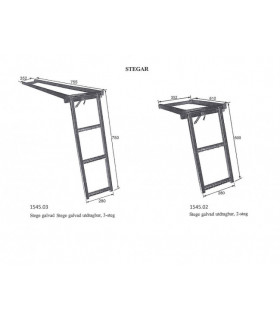 Stege som låses i uppfällt läge med fjädrande krok. Elförzinkade. Finns i 2 utföranden.