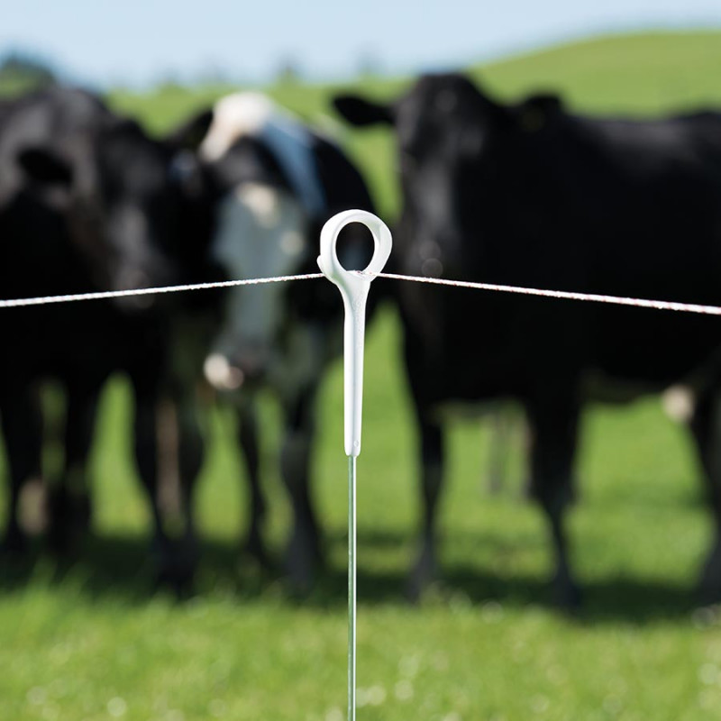 Unik och hållbar vit stolpe höjd 1.00m med 9 öglor utformad för praktiskt taget alla typer av djur. Lämplig för alla sorters (poly) tråd och band upp till 20mm. Det unika "vrid och lås" systemet garanterar en enkel och säker fastsättning av ledarna upp till 0.85m höjd.