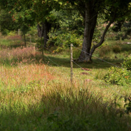 Självisolerat trä för permanenta stängsel. Inga isolatorer krävs. Insultimber (FSC®) kräver ingen kemisk behandling.