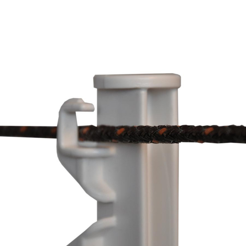 Unik och hållbar vit stolpe höjd 1.00m med 9 öglor utformad för praktiskt taget alla typer av djur. Lämplig för alla sorters (poly) tråd och band upp till 20mm. Det unika "vrid och lås" systemet garanterar en enkel och säker fastsättning av ledarna upp till 0.85m höjd.