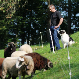 Enkel solid stolpe för mobila stängsel upp till 1,5m (063475) eller 1,8m (063482). Trådclips att montera på valfri höjd. Toppisolatorn är flyttbar så clips kan enkelt monteras.