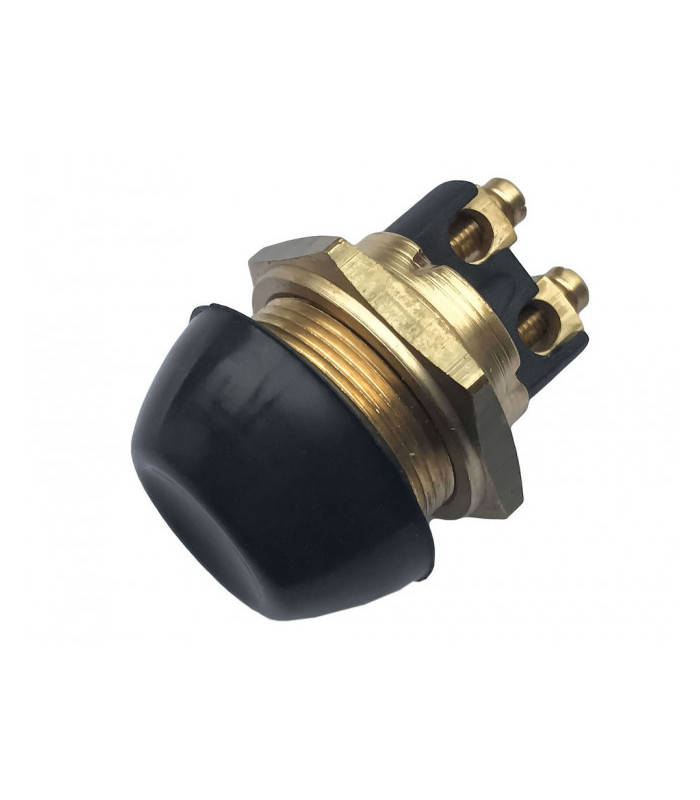 Komplett strömbrytare. Vattentät med gummihätta, sluter vid intryck, återfjädrande. Kapslingsklass IP65 = skydd mot vattenstrålning. Håldiameter 13 mm. 12/24 V. Vid 12 V - 8 A, 24 V - 4 A. Förp/st: 10.