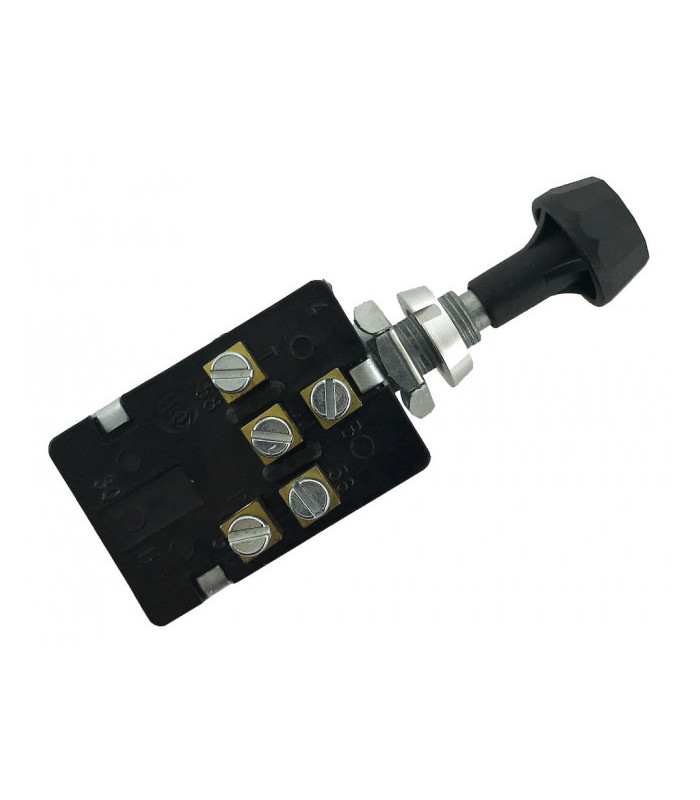 4-läges strömbrytare med svart vred. Håldiameter 26,5 mm. 12/24 V, 130 W. 6 anslutningar.