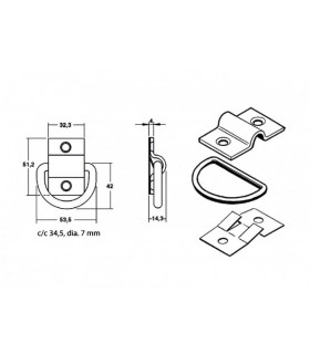Surrningsöglans platta är tillverkad i stålplåt, 3 mm, samt har 7,2 mm försänkta hål.