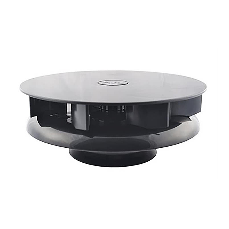 En svart, förmonterad slimline takventil utrustad med intern justeringspanel och ventilationsplatta. Singapore NMB 608Z-lager. Integrerad tätningspackning i neopren. Utsugningshastigheten kan variera beroende på ventilatorns placering på fordonet, fordonets storlek och väderförhållandena.