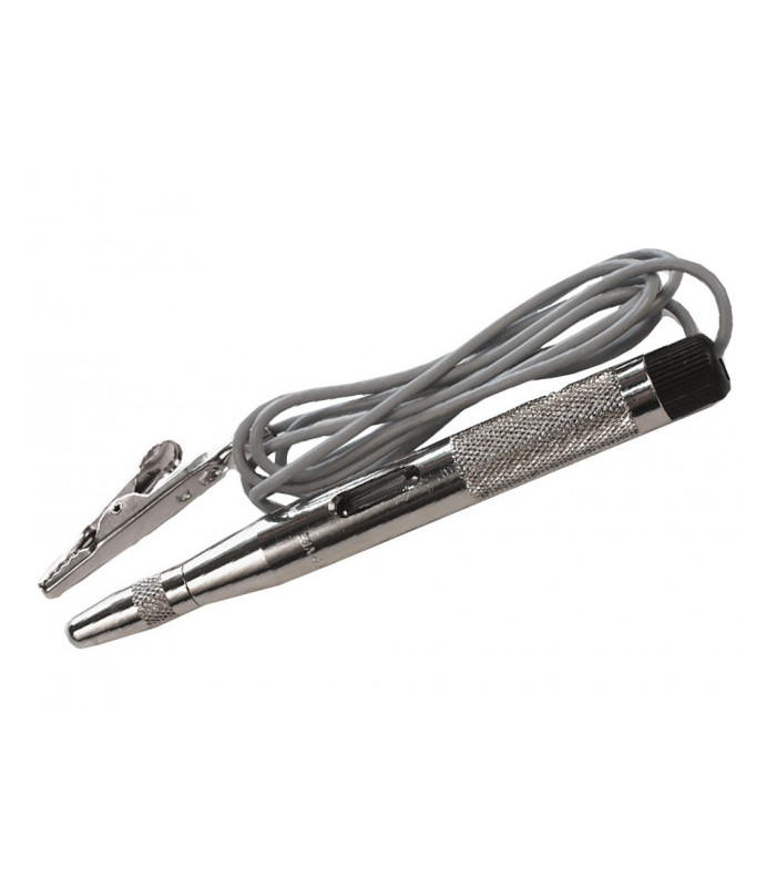 Av stål med spets. Glödlampa 12 V 3 W ingår. Klarar 6-24 V.