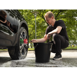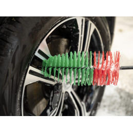 Stor och lång fälgborste som har möjligheten att rengöra hela fälgen. Med det skyddande höljet på skaftet, i änden samt de mjuka borststråna bidrar de alla till att skydda fälgen. Rörformen når in i hjulets fördjupningar och trånga håligheter. Typ av borste: Mjuk Mått: 425 x Ø 105 mm Fiber: