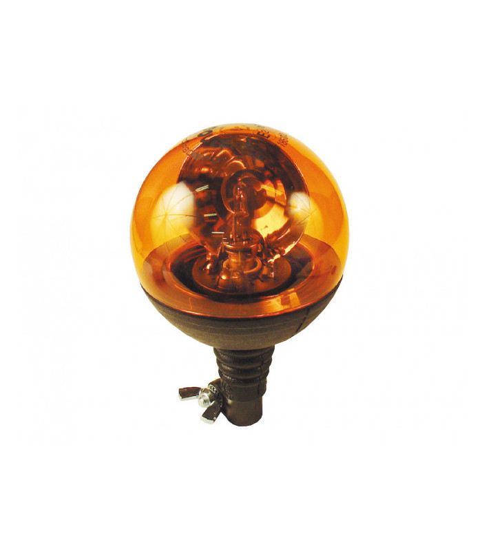 Roterande varningsljus "Boule" med kugghjulsdrift för säker gång. Glas av polykarbonat. Avsedd för stångmontage med sockel av gummi gör så att lampan böjs vid påkörning av grenar och dylikt. Finns i 12 V och 24 V men även universell 12/24 V (levereras utan glödlampa).