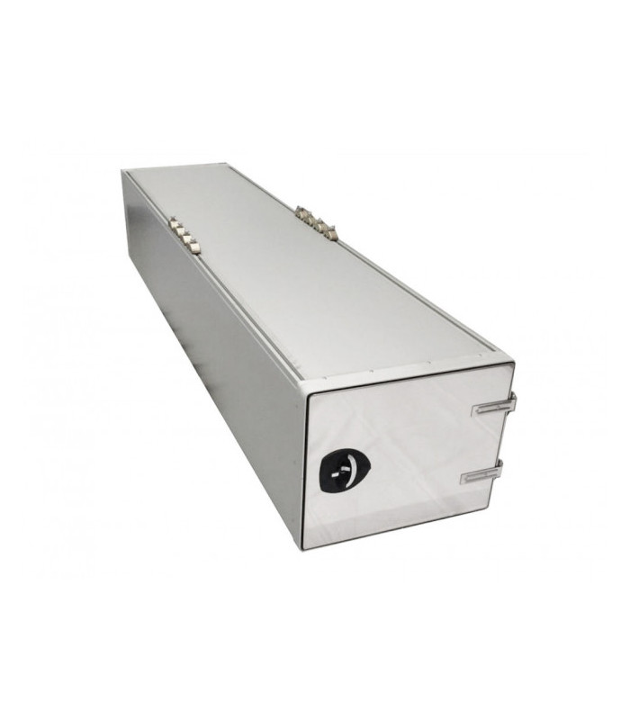 Är tänkt som förvaring för handtruck under körningen. Lådan är tillverkad i anodiserad aluminiumplåt med dörren av polerad rostfri plåt. Lås i hårdplast med gjutet vrede och gångjärn i rostfritt stål. Passar de flesta handtruckskärror.