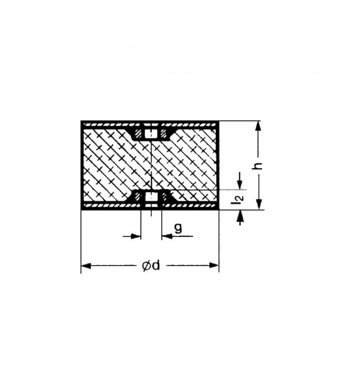 Vibrationsdämpare, typ M, med 2 st gängade tappar, 60-65 gr shore gummi.