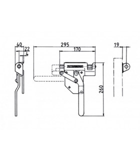 I galvaniserat utförande med smörjnippel. Kolvstångsdiameter 16 mm. För hängande sidolämmar. Finns i vänster- och högerutförande.