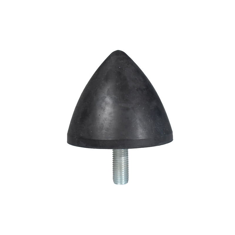 Ändstopp med bottenplatta i stål och gängad tapp. Konformat gummi.