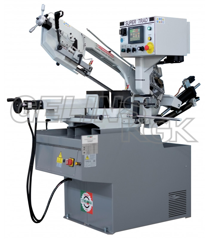 SUPER TRAD 301Mekaniska bandsågar, idealiska för stålprofiler och medelstora sågvolymer. Högre stabilitet och precision. Växellåda i oljebad. Två såghastigheter. Elektromekanisk bladsträckning. Skruvstycke med snabblåsning och snabbjustering (pneumatiskt skruvstycke på begäran). Modell SUPER TRAD 301 har försetts med ett nytt runt arbetsbord för...