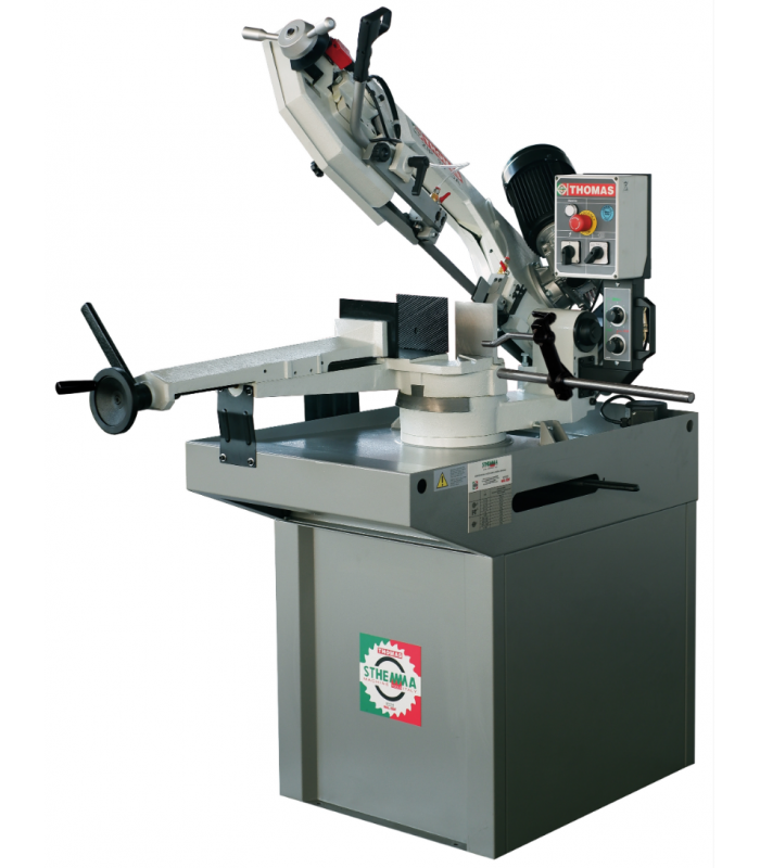 ZIP 22Manuell bandsåg, idealisk för sågning av stål och metall. Sågbygel i gjutjärn. Växellåda i oljebad. Två såghastigheter på 3-fas maskinerna. Mekanisk bladsträckning. Skruvstycke med snabblåsning. Arbetsbordshöjd: 920 mm.Stativ och ett sågblad ingår.
