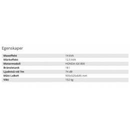 Modell: CPG4000DHY-EU-SC Watt vid start: 4500 Toppeffekt: 3600 Kontinuerlig effekt: 3500 Starttyp: Dragsnöre, Elektrisk, Fjärrkontroll