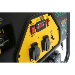 Detta elverk är utrustat med en encylindrig fyrtaktsmotor på 196cc som enkelt hanterar båda drivmedlen. Skiftningen mellan gasol och bensin sker smidigt med ett vred på elverkets framsida.