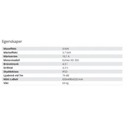 En-fas elverk med 4,6 kw Yanmar dieselmotor. Funktioner: Elstart Voltmeter LED Öppet skyddande chassi Enkel att förflytta Uppfyller CE säkerhetsdirektiv