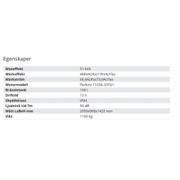 Elverk Reglerteknik: Synkrongenerator Typ: En-/Trefas Spänning: 400V, 230V Frekvens: 50 Hz