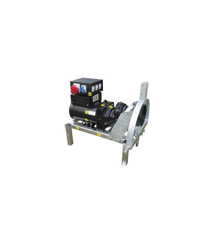 Traktordrivet elverk. Varvtal 1500 v/min för kontinuerlig drift med kuggväxel i oljebad. Utrustad med belastningsskydd, voltmeter, amperemeter, frekvensmätare samt jordfelsbrytare. Generatorn tål överbelastning 3 x märkströmmen under 20 sekunder för start av större motorer. Monterad på en helgalvad ram. Borstlös synkrongenerator med AVR reglering.