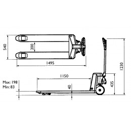 | Gaffelhöjd min/max | 83 / 198 mm |