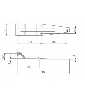 Gångjärnsblad i rostfritt utförande. Längd 256 mm. Höjd 65 mm. Godstjocklek 4 mm.