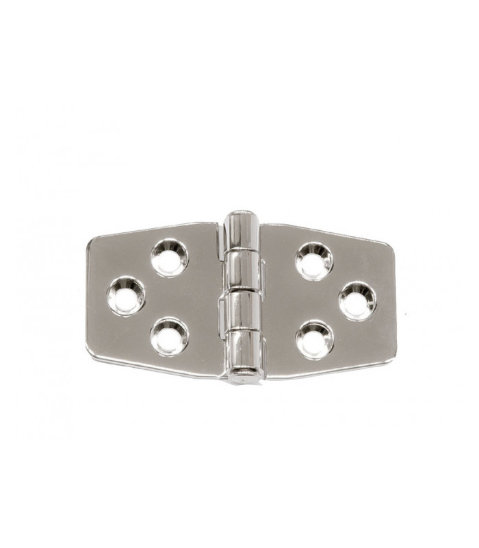 Gångjärn i rostfritt utförande. Totallängd 48 mm, 24+24 mm. Höjd leddel 40 mm. Godstjocklek 2 mm.