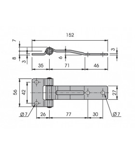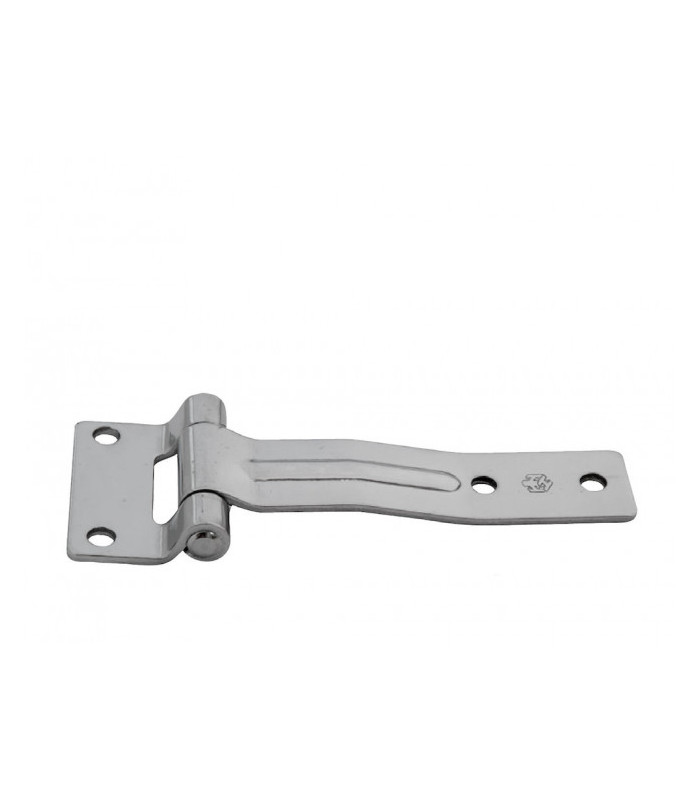 Gångjärn i rostfritt utförande. Totallängd 150 mm, 75+75 mm. Höjd leddel 75 mm. Godstjocklek 3 mm.