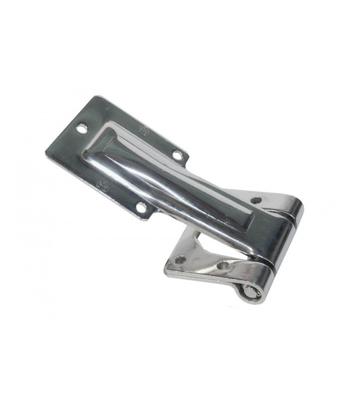 Gångjärn i rostfritt, smörjfritt utförande. Totallängd 152 mm, 35+117 mm. Höjd leddel 56 mm. Godstjocklek 3 mm.