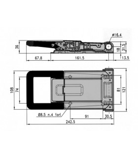 Kompakt låshandtag inklusive låscylinder och nyckel. Inbyggt vred och kraftig låstunga, 180 g.