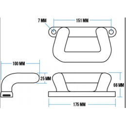 Draghandtag i svart plast. Höjd 66 mm, längd 175 mm, bredd 100 mm CC 151 mm. Håldiameter 7 mm