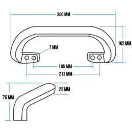 Draghandtag av polyuretanöverdragen stålskena. Lämplig som instegshandtag. Finns i svart och gult. Höjd 75 mm, längd 300 mm, CC 165/213 mm.