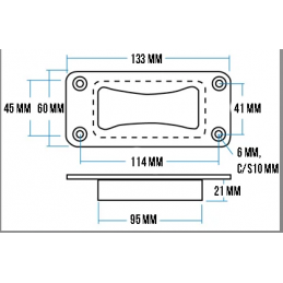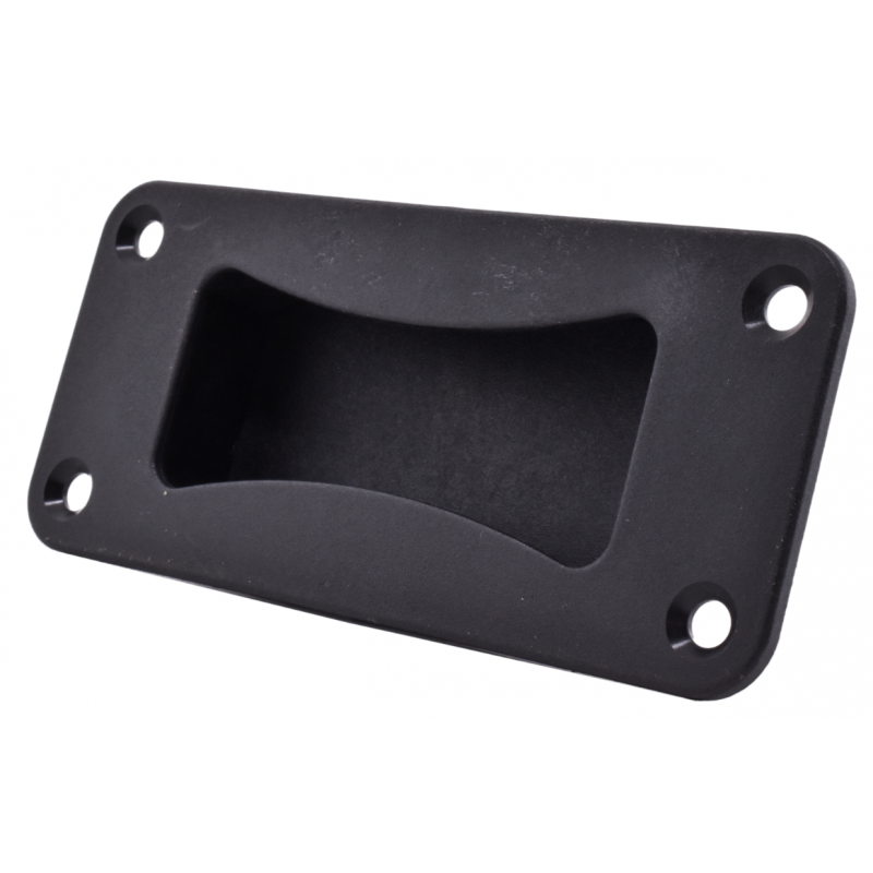 Draghandtag för infällning i svart PVC. Längd 133 mm, bredd 60 mm, djup 21 mm. Infällningsmått 95 x 45 mm.