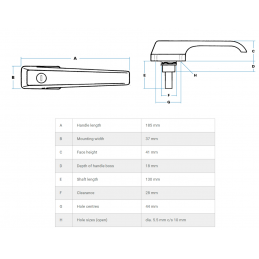 Tryckhandtag med låsning höger eller vänster för nivålås.