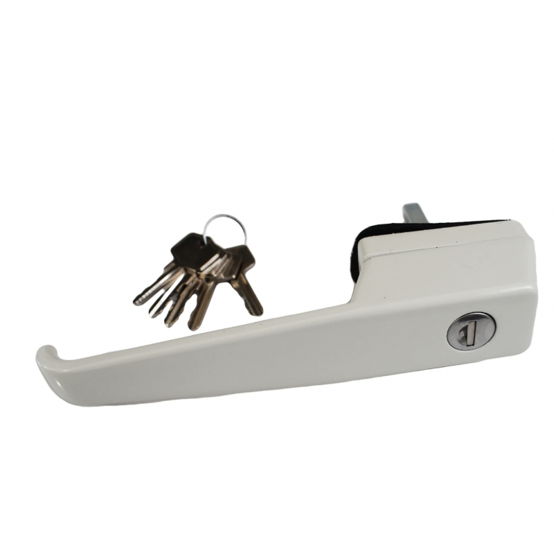 Ytter- och innerhandtag sats vänster "Carloc" komplett. Levereras inkl. 2 st nycklar samt skruvar för montering.