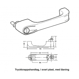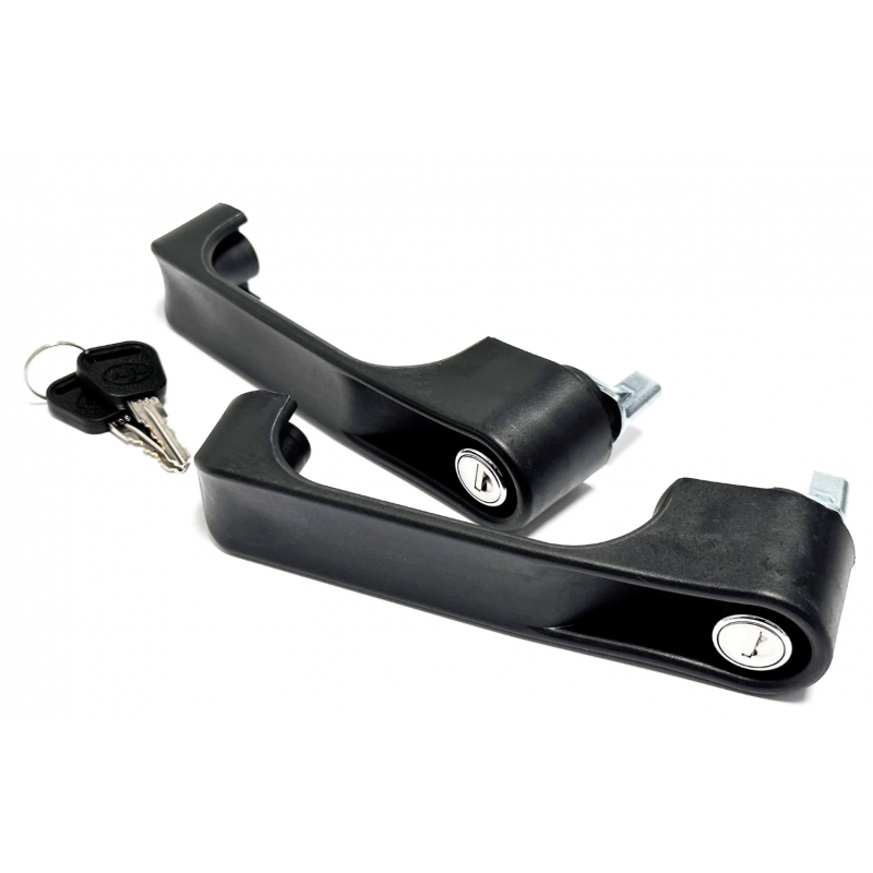Tryckknappshandtag med lås, svart plast, samma nyckelnr. OBS! Säljes styckvis, varje handtag levereras med ett par nycklar.