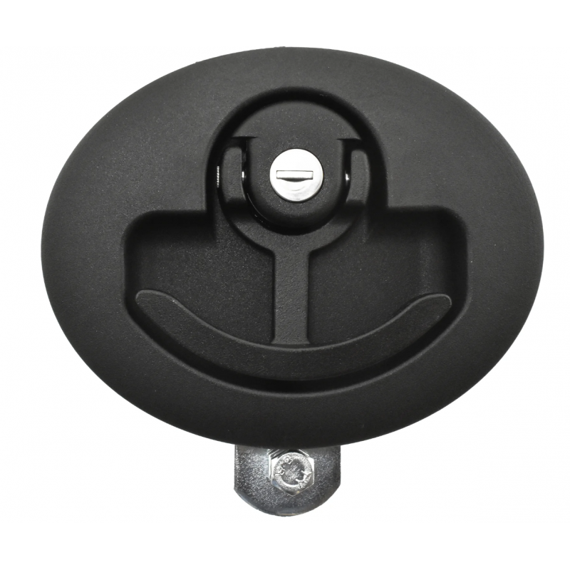 T-Handtag, med låsning, svart pulverlack. Levereras med 2 st nycklar.