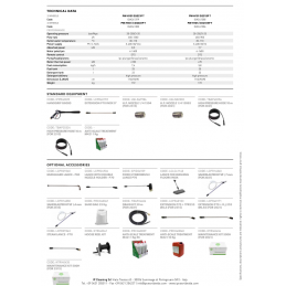 • Snabbkopplingssystem D12 • Totalstoppsystem med fördröjd avstängning av motorn • Säkerhetsavstängning • Tryckreglering • Sugning av tvättmedel • Parkeringsbroms • Vattentank: volym 12 l • Digital termostat • Flödesvakt • Förventilation av förbränningskammaren • Optisk flamövervakning • Överhettningsskydd (avgastemperatur över 260 ° C) • Brännaren...