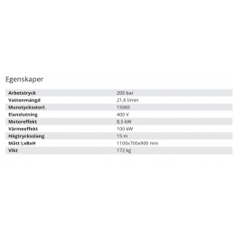 Ny Kränzle hetvattentvätt. Levereras med eller utan slangvinda.Högtryckspistol med snabbkoppling och enkelt spolrör, 1100 mm. • En tryckreglerventil för steglös reglering av vattenmängd och -tryck. Denna ventil kan även användas till trycklöst bypassdrift.• En säkerhetsventil som skyddar maskinen mot otillåtet högt övertryck.• En strömningsvakt som...