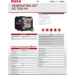 Elverk GE 2000 MI från Italienska MOSA FUNKTIONER Automatisk spänningsreglering Motorstopp på grund av låg oljenivå ESC-funktion (Engine Speed Control). Uttag: 1x230V 16A 2P + T Schuko Överbelastningsskydd Batteriladdare med termiskt skydd Parallell utgång med en andra generator 2 st USB-portar Överensstämmer med CE-direktiven