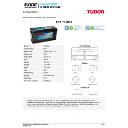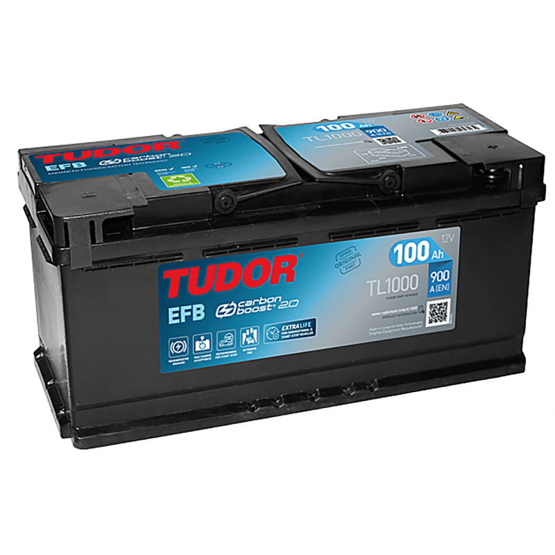 PTudor TL1000 Start-Stopp EFB-batteri har avsevärt förbättrad prestanda vad avser laddningsmottaglighet och cyklingslivslängd tack vare nya blylegeringar och unika koltillsatser. EFB-batterierna är lämpliga för bilar med Start-Stoppsystem i eventuell kombination med regenerativ bromskraftåtervinning och andra bränslebesparande funktioner.