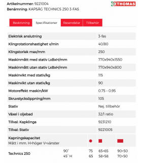 SUPER TECHNICS 350• Såghuvudvridning 0-90 grader åt höger och 0-45 grader åt vänster.• Reduktionsväxel i oljebad, med kugghjul i nickelbrons och härdad och slipad snäckskruv.• Klingsäker, justerbar koppling.• Snabblåsande skruvstycke med gradfria backar.• Dubbel justerbar led.• Glidskruvstycke för längsgående sågning. • Kylvätskepump.Extra tillbehör:...