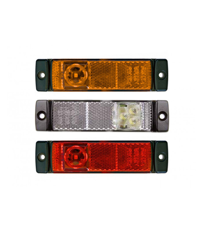 LED Positionslampa med reflex. För vågrät eller lodrätt påbyggnad. 130 x 32 mm. Vid vågrät montering av 4699D.12 och 4699D.24 ska optikfältet peka utåt mot fordonets sida. Artiklar för butik levereras med ryttare.