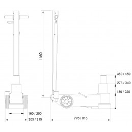 Luftdomkraft utformad för tunga höga fordon. • 1-stegs • Dödmansgrepp för säker användning. • Ergonomiskt handtag. • Överbelastningsventil. • Förlängningar 100 & 200 mm