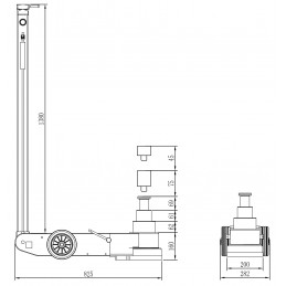 Luftdomkraft utformad för tunga höga fordon. • 1-stegs • Dödmansgrepp för säker användning. • Ergonomiskt handtag. • Överbelastningsventil. • Förlängningar 100 & 200 mm