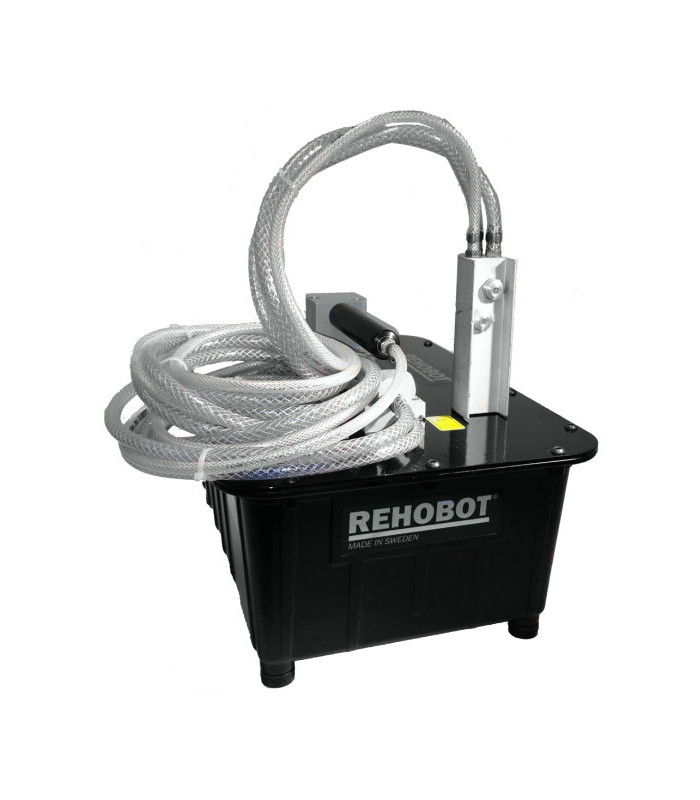 FP - försedd med fotpedal för manövrering av start/stopp och avlastning. FP, RC och MRV-modellerna har inbyggd avlastningsventil för retur av olja till tank. Siktglas möjliggör kontroll av oljenivån. Pumparna är försedda med ljuddämpare. Levereras med svivelkoppling och 2 m slang med snabbkoppling.