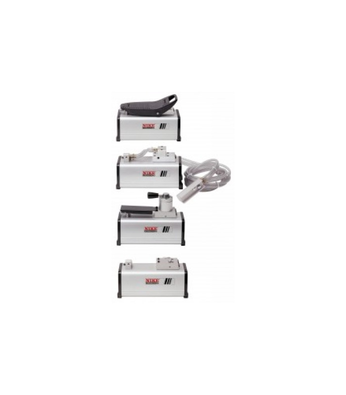 FP - försedd med fotpedal för manövrering av start/stopp och avlastning. FP, RC och MRV-modellerna har inbyggd avlastningsventil för retur av olja till tank. Siktglas möjliggör kontroll av oljenivån. Pumparna är försedda med ljuddämpare. Levereras med svivelkoppling och 2 m slang med snabbkoppling.