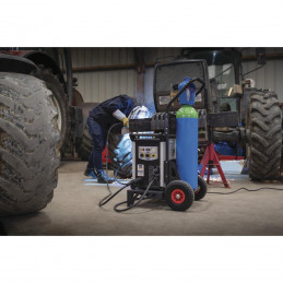 Detta är en kompakt enfassvetsmaskin som kombinerar MIG/MAG, flusstråd och MMA-svetsprocesser.